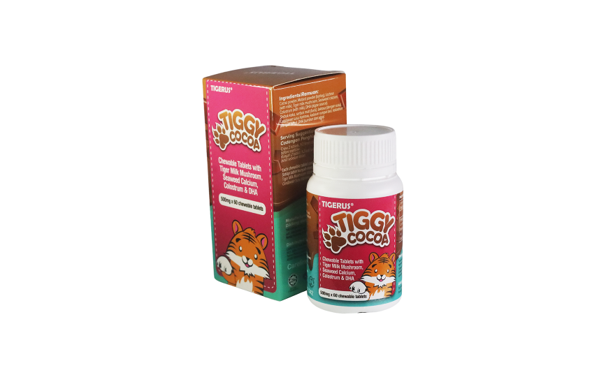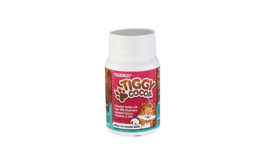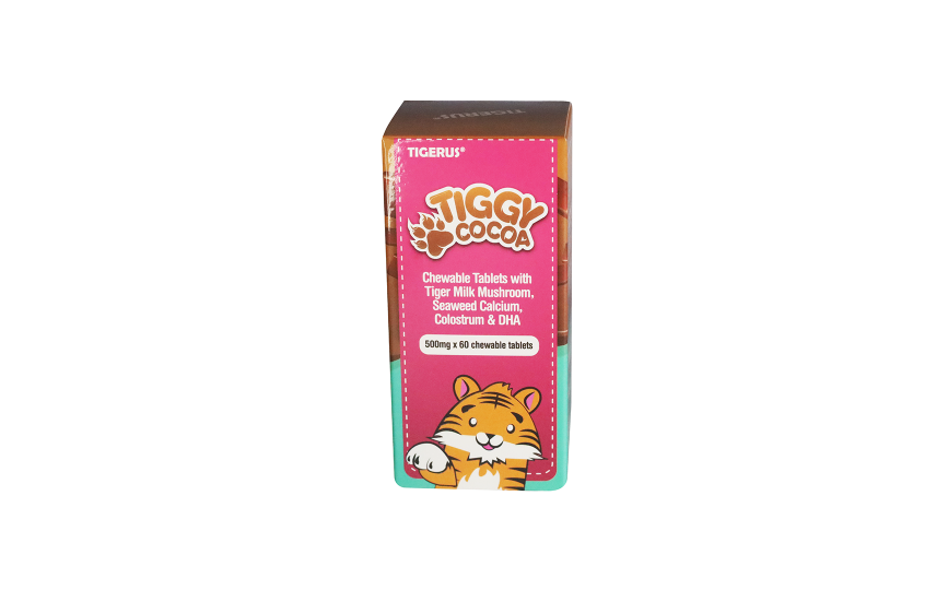 TIGERUS® TIGGY Cocoa Chewable Tablets – a delicious cocoa-flavoured chewable tablets specially formulated to support the immune health of growing little ones.